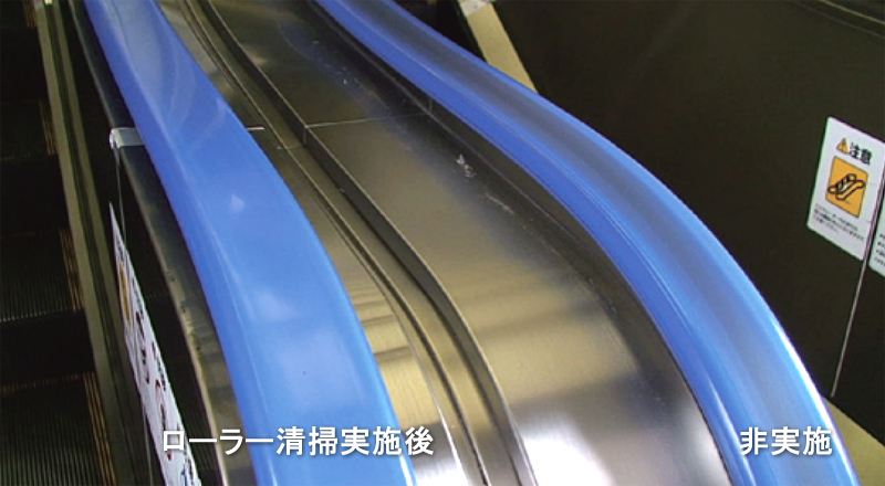 トイレや洗面施設と同様に、エスカレーターの手すりは利用者が間近で見て、直接手を触れる部分であるだけに、うす汚れた手すりはイメージ的にも衛生面でも、大きなマイナスです。 手すりの美観を保つことで、安心してエスカレーターを利用することができ、顧客満足度の向上が図れます。